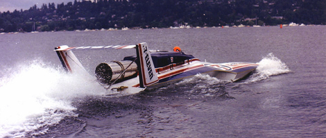 The real boat: The real boat was driven by popular driver, Steve Reynolds, and was also very fast. However, it often suffered mechanical problems.