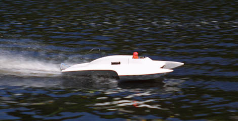 The model: Marc built this obscure boat in a remarkable 8 days prior to the second race of 2013. The boat was fast right out of the box and you can tell Marc holds nothing back. On its first pre-race test, Marc had it going full tilt down the backstretch at Lake Pleasant and blew it over. This is going to be a good one. Marc is now contemplating leaving it this way or painting it into the 82 Executone as originally planned.