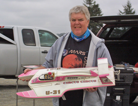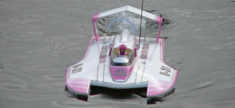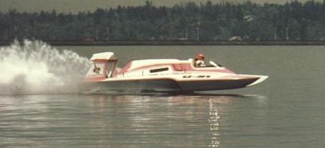 The real boat: This boat was built in the Norm Berg shop along side the other cathedral winged boat, Squire Shop. The boats were identical except the Squire was built of wood and the Circus was made of honeycomb aluminum. Steve Reynolds first made his mark in unlimiteds driving this boat impressively and quickly became a thorn in the side of Bill Muncey's "Blue Blaster".