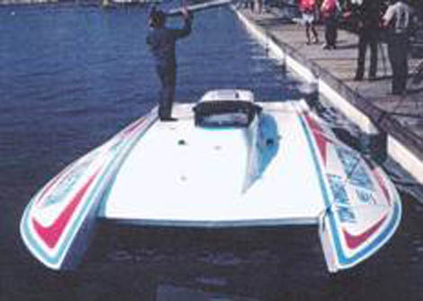 The real boat: This boat was originally the fourth Oh Boy! Oberto in 1982. Fred Leland and others campaigned the boat under a number of sponsor names such as Miss Rock, Coors Light Silver Bullet, Boat, and Pocket Savers Plus.