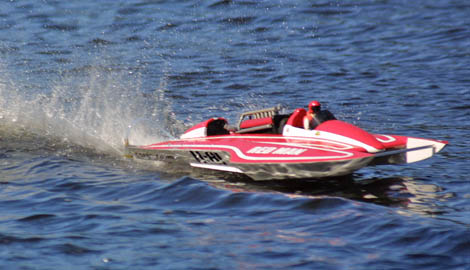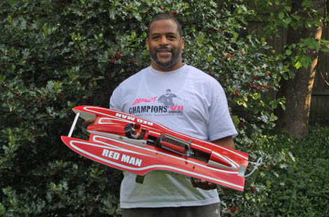 The model: This is the third boat of the Red Man team that Gene was running in Division two. Gene turned the boat over to Mitch Dillard to run for him in 2013. Mitch replaced the heavy cowling with vacuum formed ones, reinforced the bottom, repositioned the motor and replaced the stuffing box, strut and skid fin, remounted the dummy motor, sanded down and repainted the hull and it's turned out to be a pretty good race boat. Mitch is proud to be part of the Red Man Racing team.